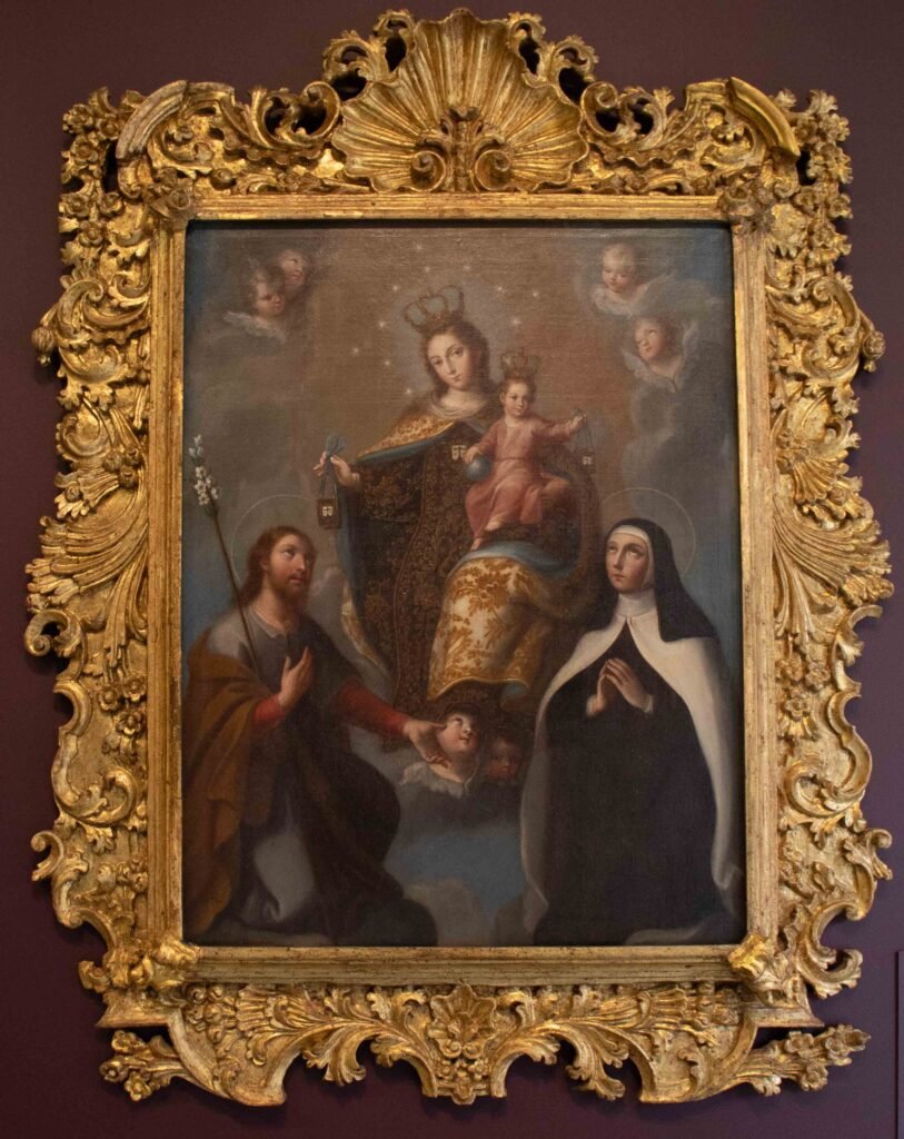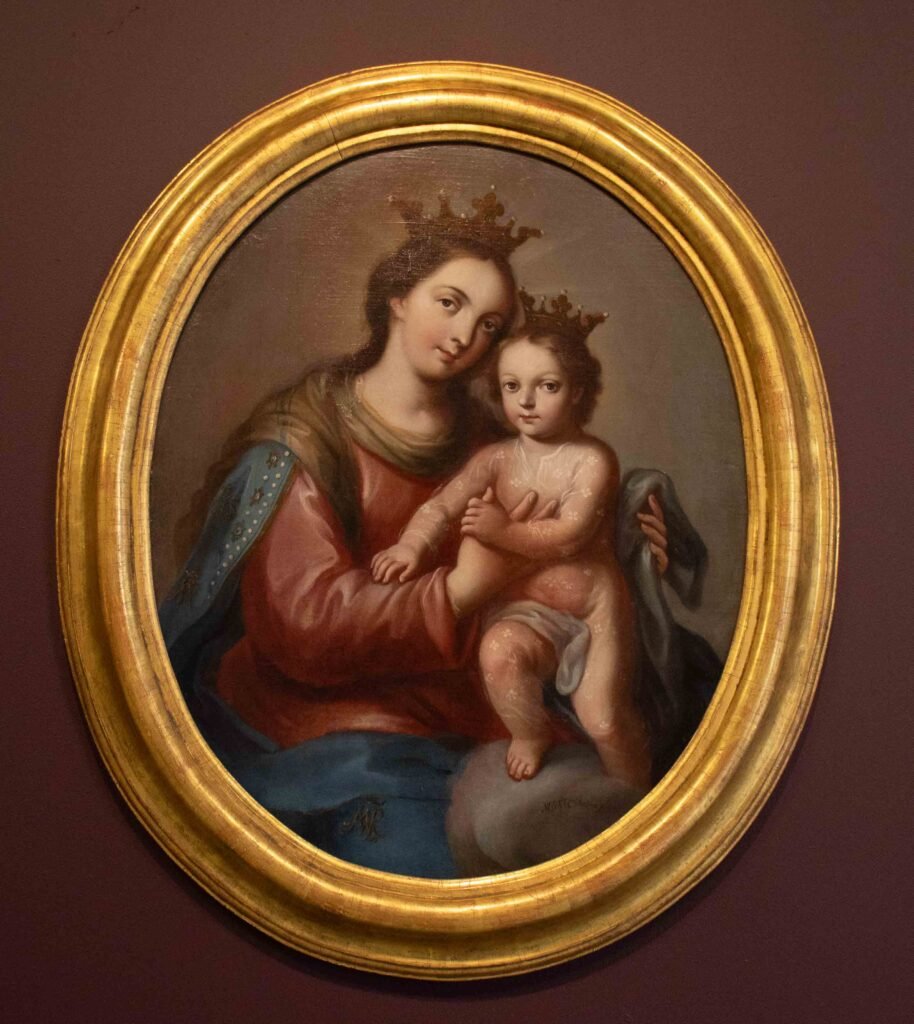 No hubo artista novohispano quien no dedicara sus empeños a María. Ella mira de frente a Su pueblo, a quien Le entrega al Redentor.
